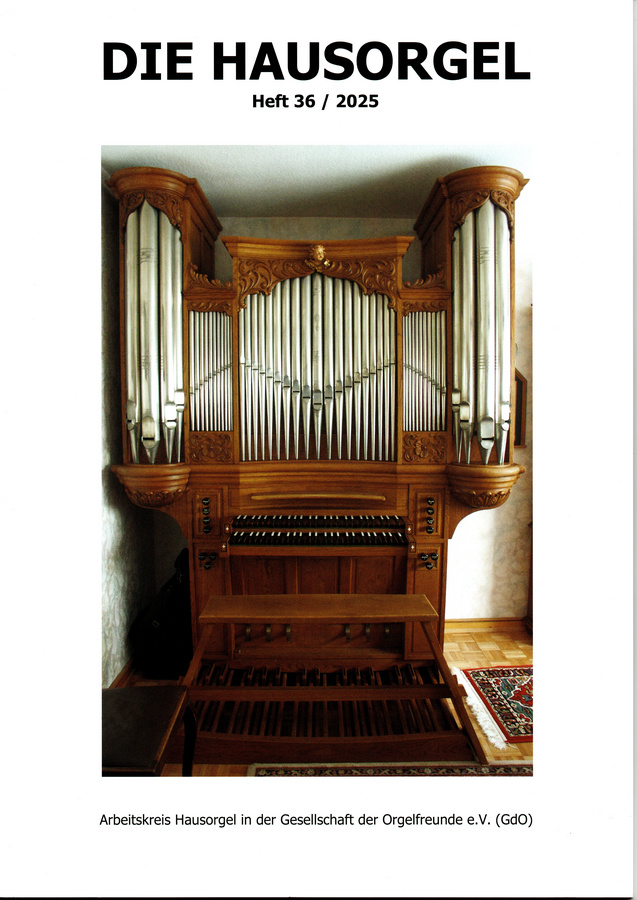 Die Ausgabe 36 unseres Jahresheftes "Die Hausorgel" ist im Februar 2026 veröffentlicht worden. Den Titel ziert die 1980 von Alfred Wild erbaute Hausorgel von Klaus Biller. Die Redaktion lag in den Händen von Magister Abraham Karl Selig. Die Gestaltung des Satzes hatte Dr. Markus Frank Hollingshaus, der auch das Vorwort schrieb. Unserem Orgelfreund und Nestor Werner Götz, der über 10 Jahre “Die Hausorgel” redigierte, hat Dr. Hajo Stenger zum 80. Geburtstag einen Artikel gewidmet.
